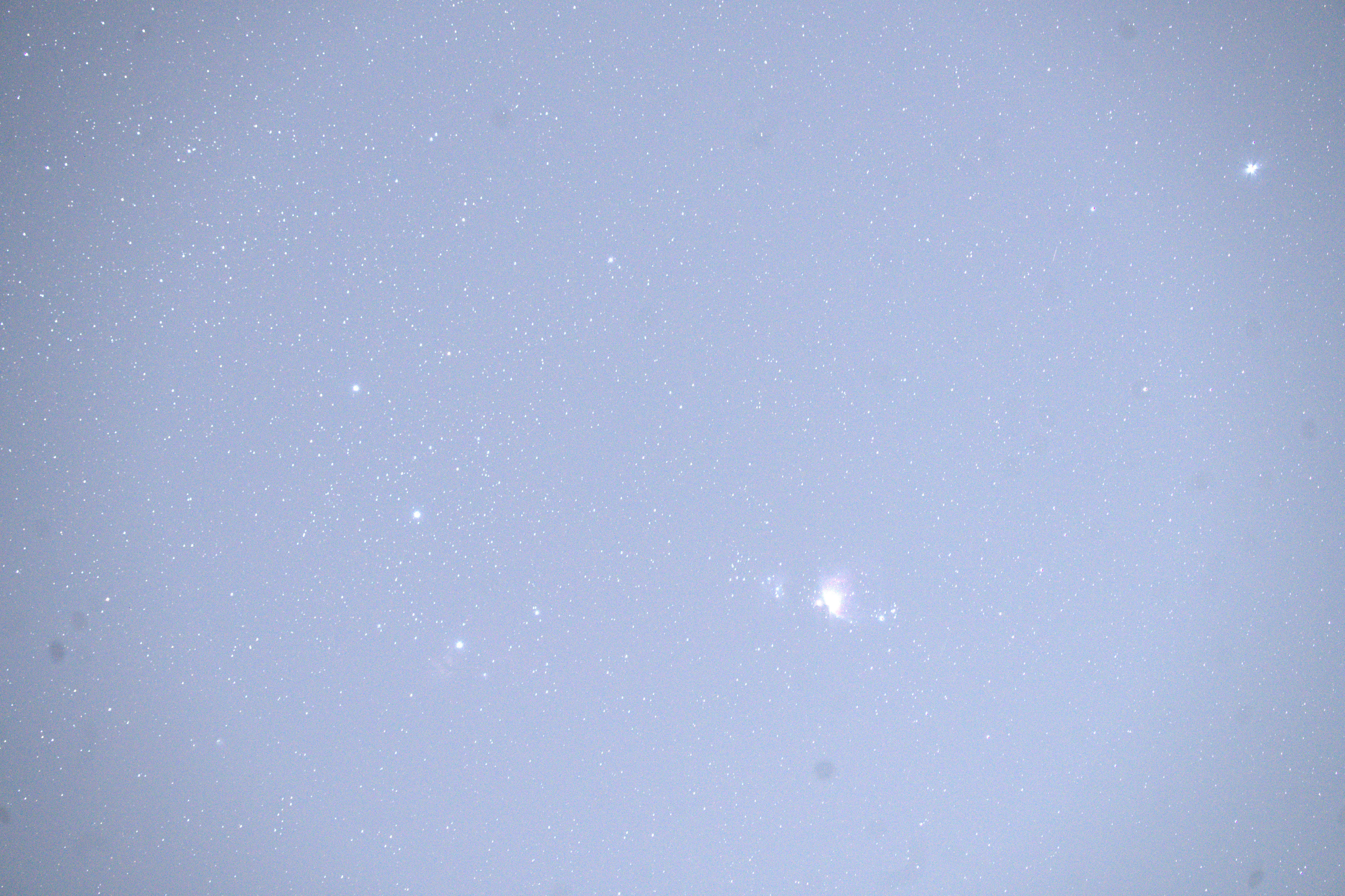 There are two ways to test how well aligned the mount is in the field: first, with the tracking set to sidereal, take a long exposure and see if there is any stretching of stars. When I properly align my mount, I can easily capture up to 5-minute exposures without the stars deforming. Second, use the “go to” feature to find a target. I initially chose “M45: the Pleiades” as a test, and it centered the beautiful cluster of stars perfectly. I then decided to use the widest field of view (150mm) to target the Orion constellation.