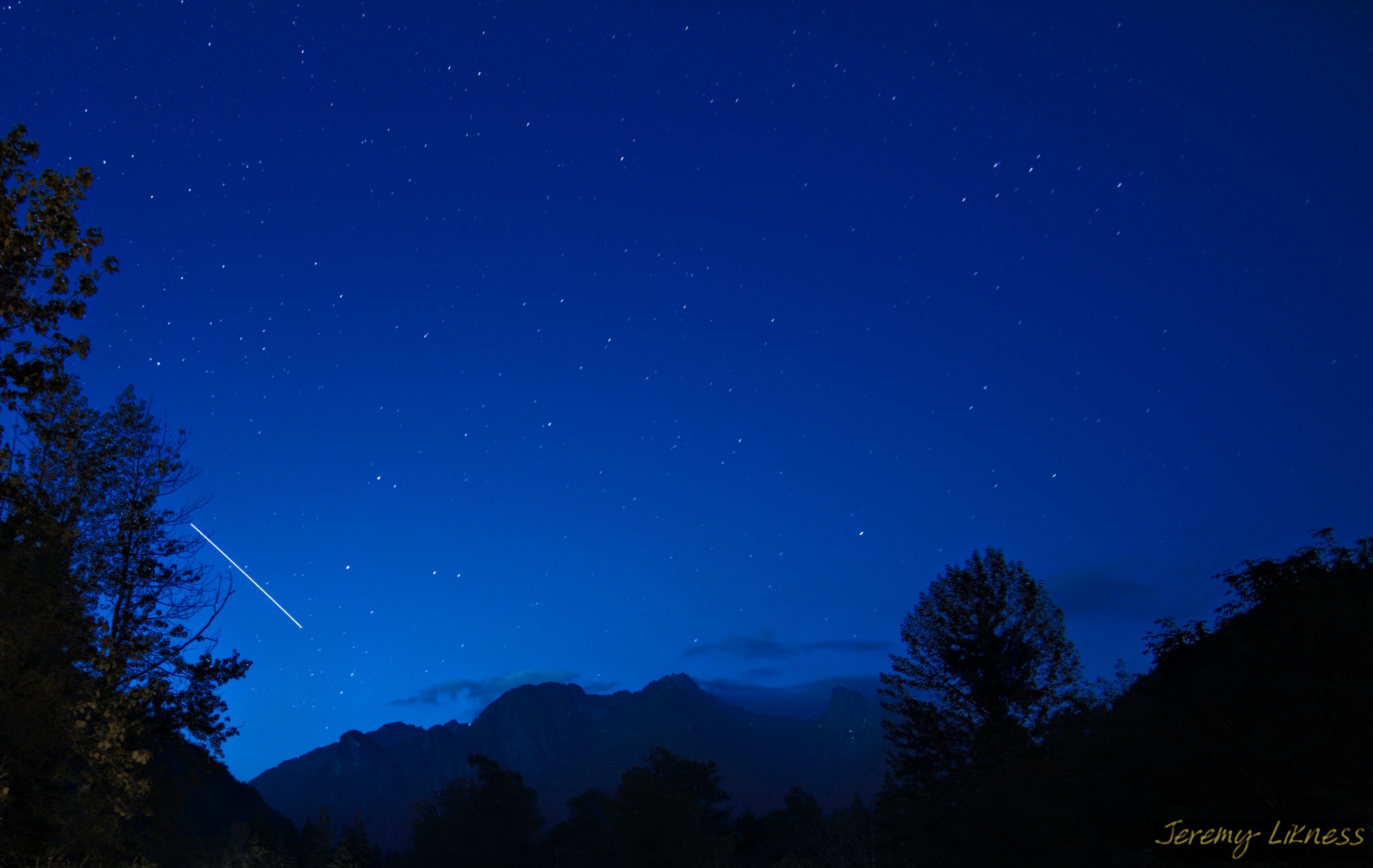 As we were enjoying the view, the International Space Station appeared and arced slowly across the sky. I captured it with a 30-second exposure.
