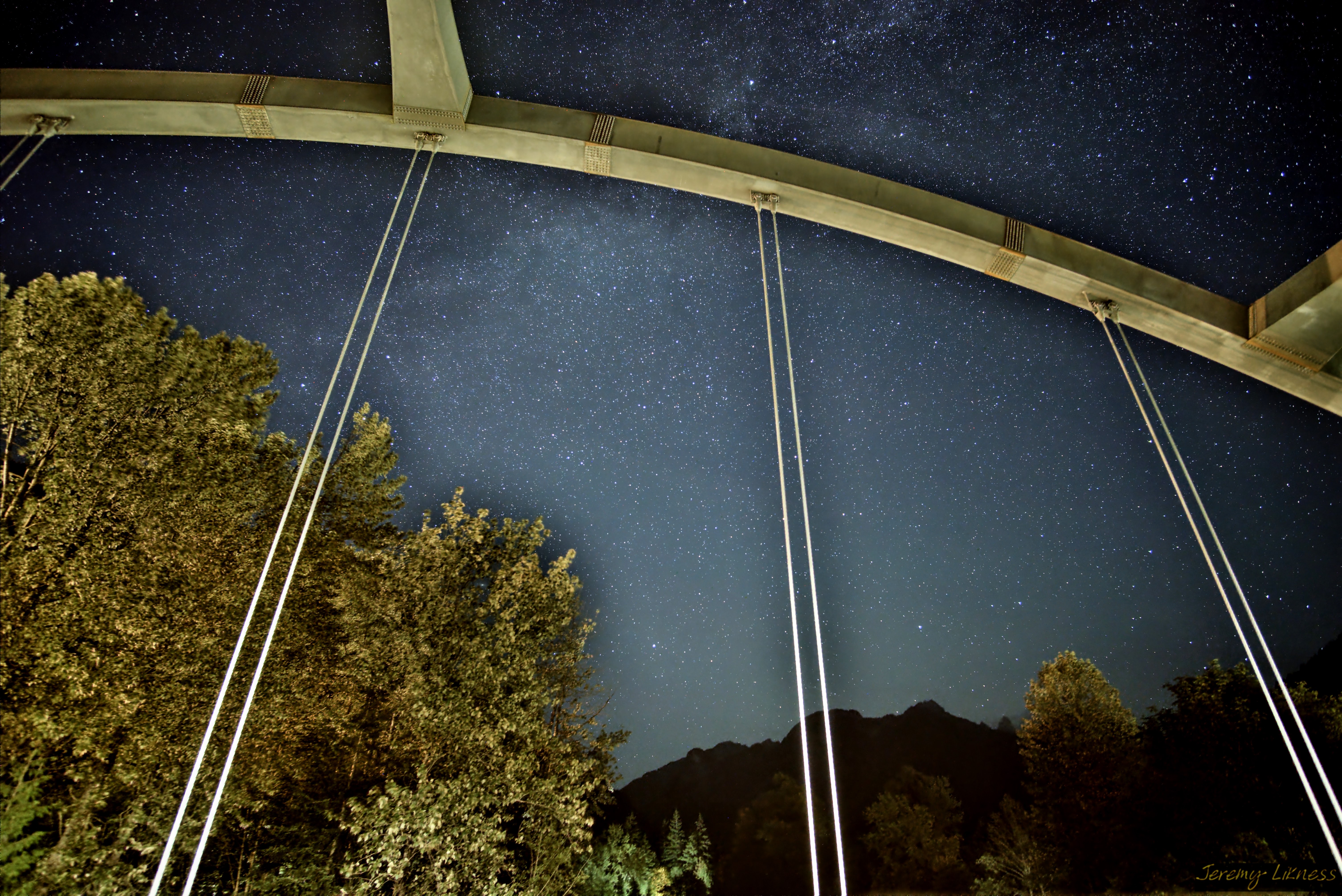 Our original plan was to visit a small park at the end of town that would be very dark. Unfortunately, we arrived too late after sunset and didn’t want to stumble around an unfamiliar landscape near a large river. We’ll return another day when it’s light and setup to wait for darkness. So, we returned to the bridge. There were street lamps and occasional passing cars, but the view was incredible.