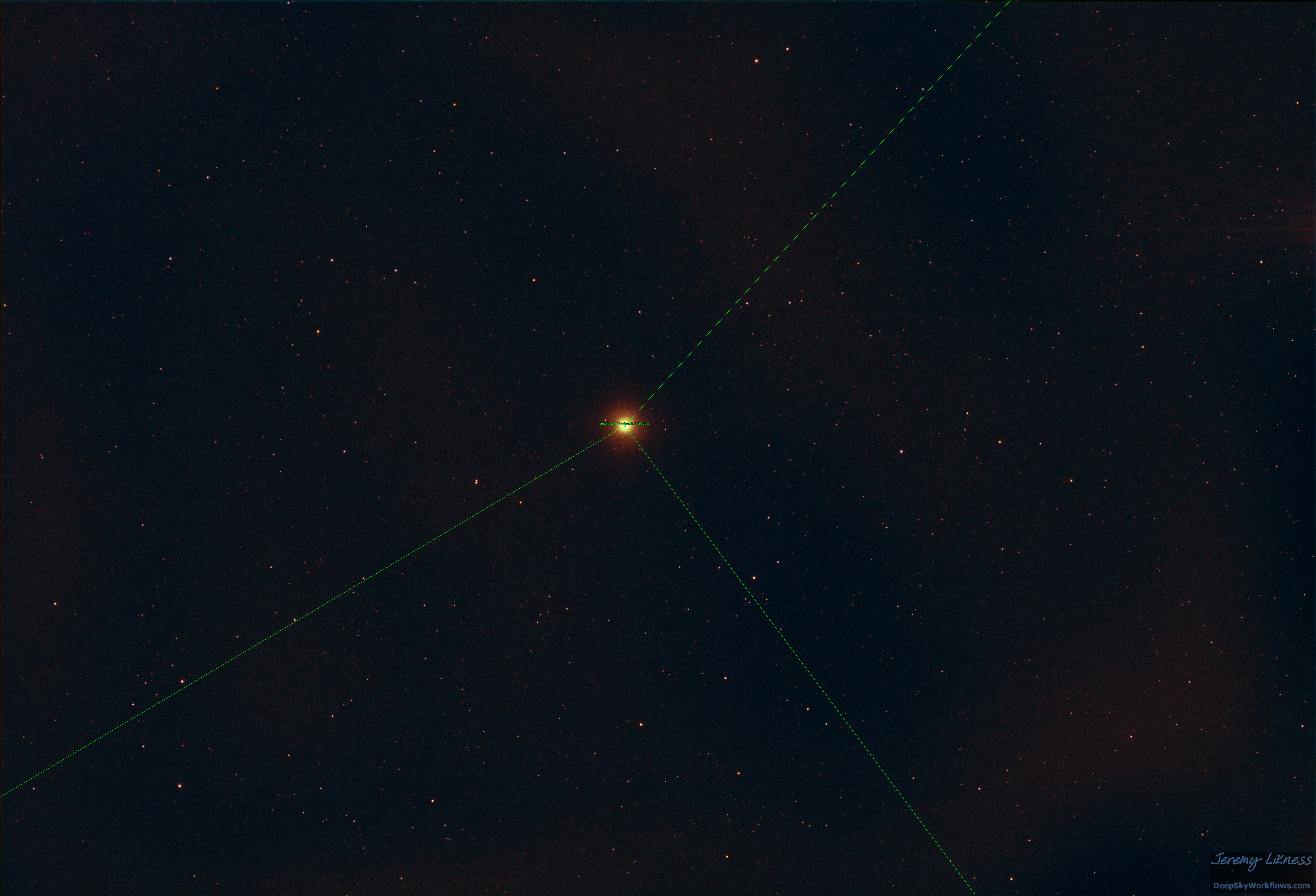 This evening I decided to capture something a little different than my typical targets. How about a star? It was really an experiment to see what I could capture without over-saturating my main target, the brilliant red giant, Betelgeuse.