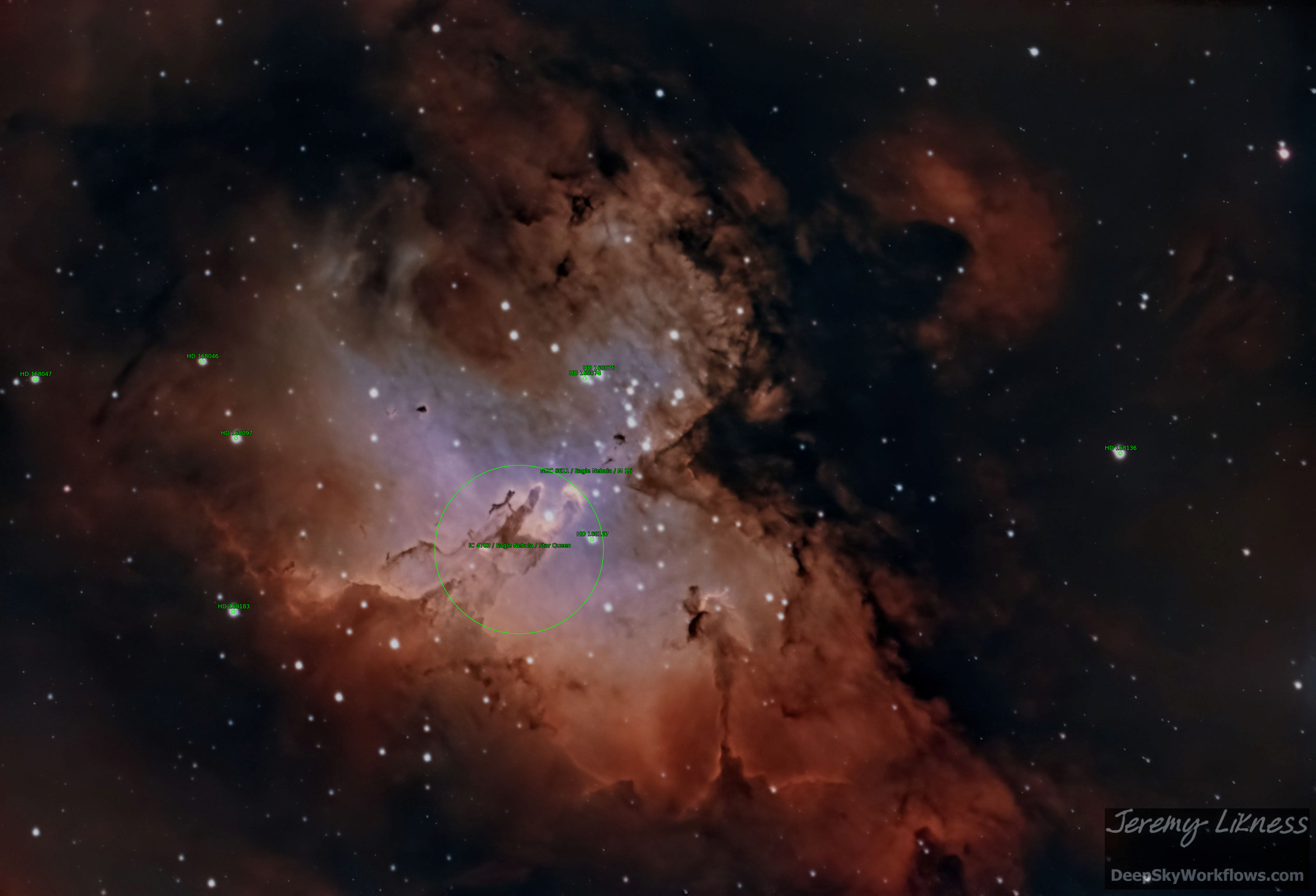 The haunting image of massive interstellar dust pillars captured by the Hubble telescope existed only in myth until I saw them stand out distinctly against the background in one of my first photos of M16, the Eagle Nebula. Those images felt unfished. Hopefully, this one is ready. I present M16 and the Pillars of Creation.
