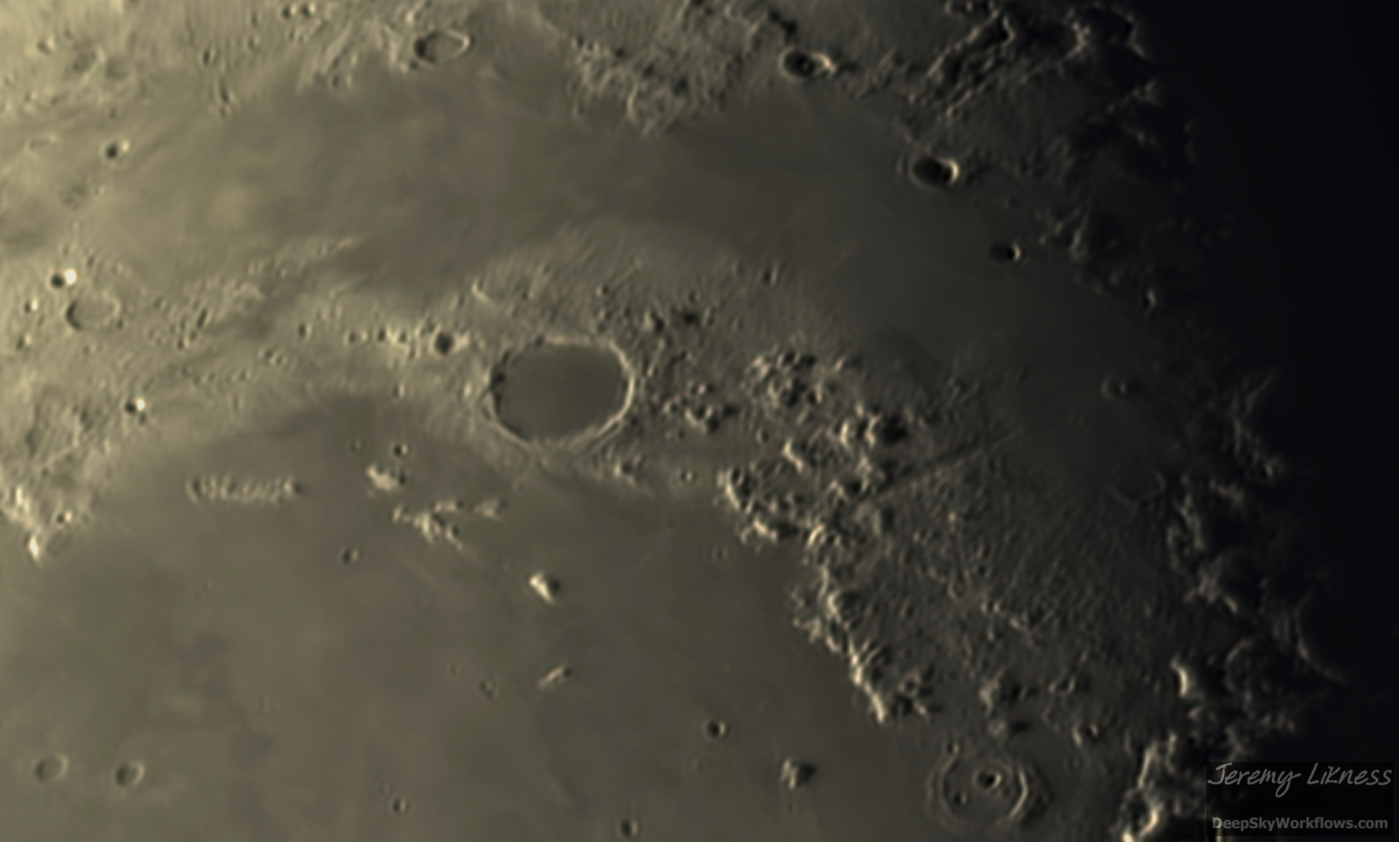 A close look at the very distinct crater Plato taken with a QHY5III462C camera.