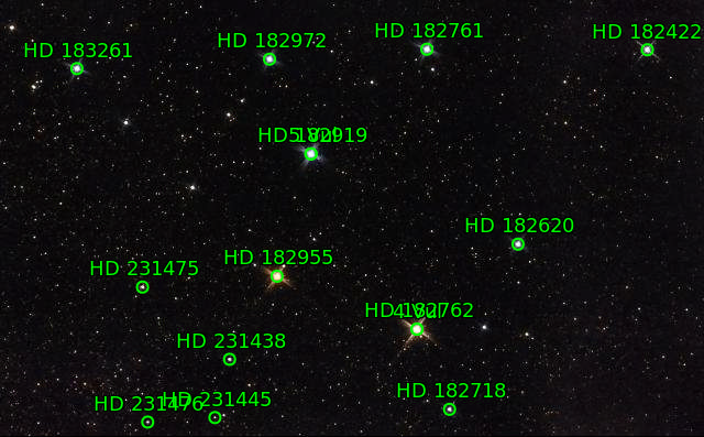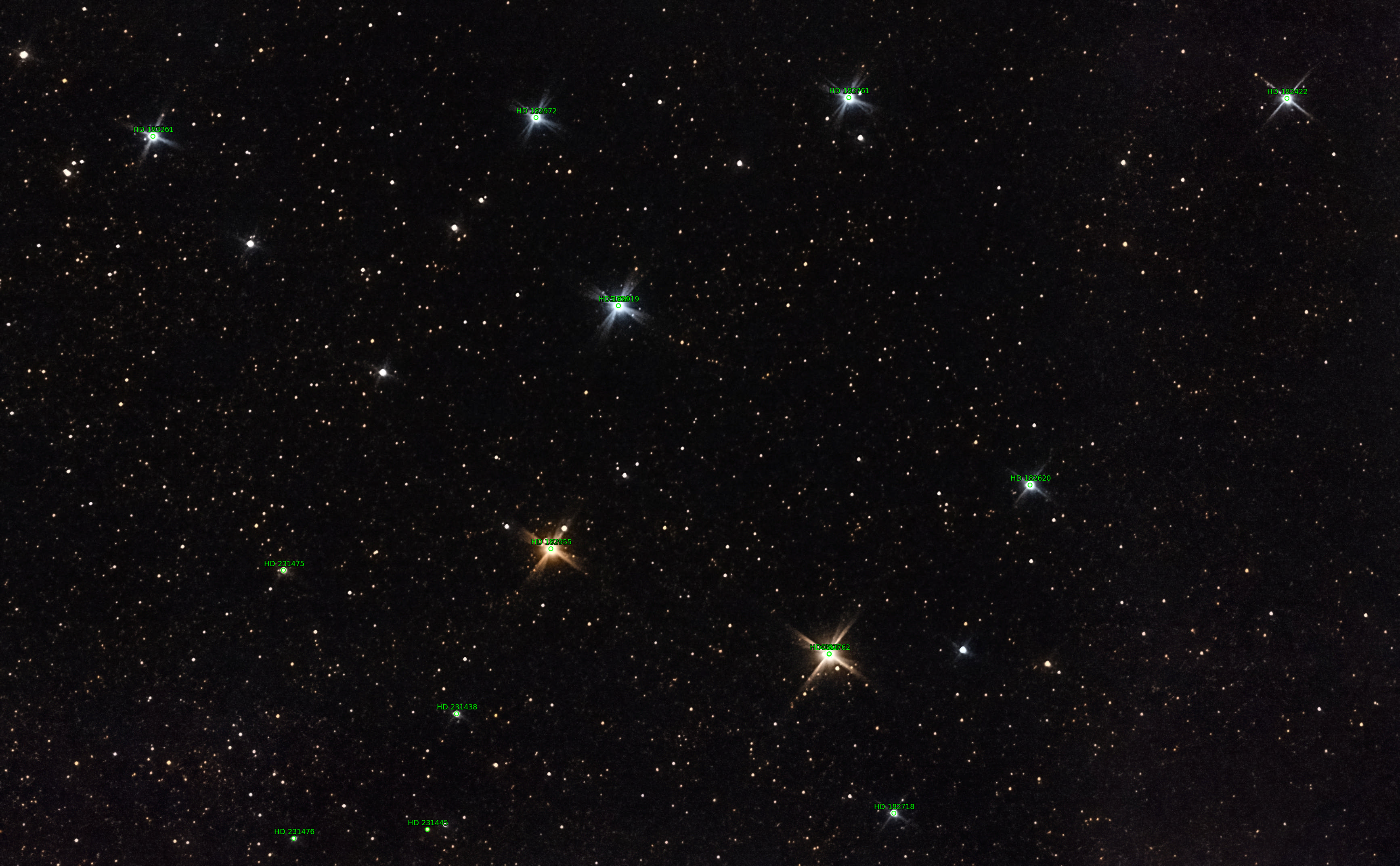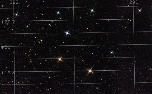 Brocchi's cluster is a beautiful asterism made of colorful stars that randomly form a coat hanger pattern. This image is a mosaic to capture the full starfield.