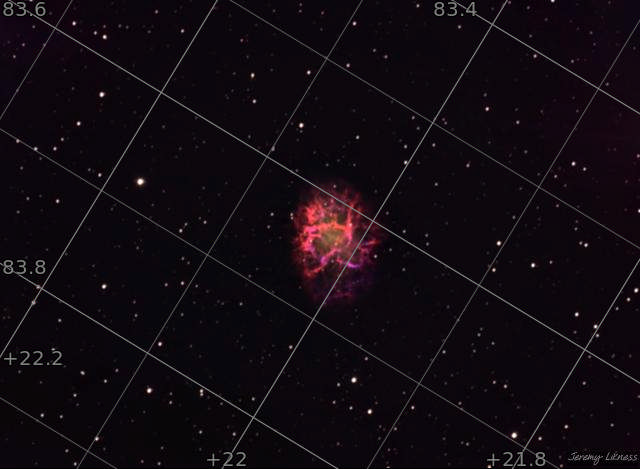 This is a detailed rendering of the crab nebula using a combination of broadband and SHO filters.