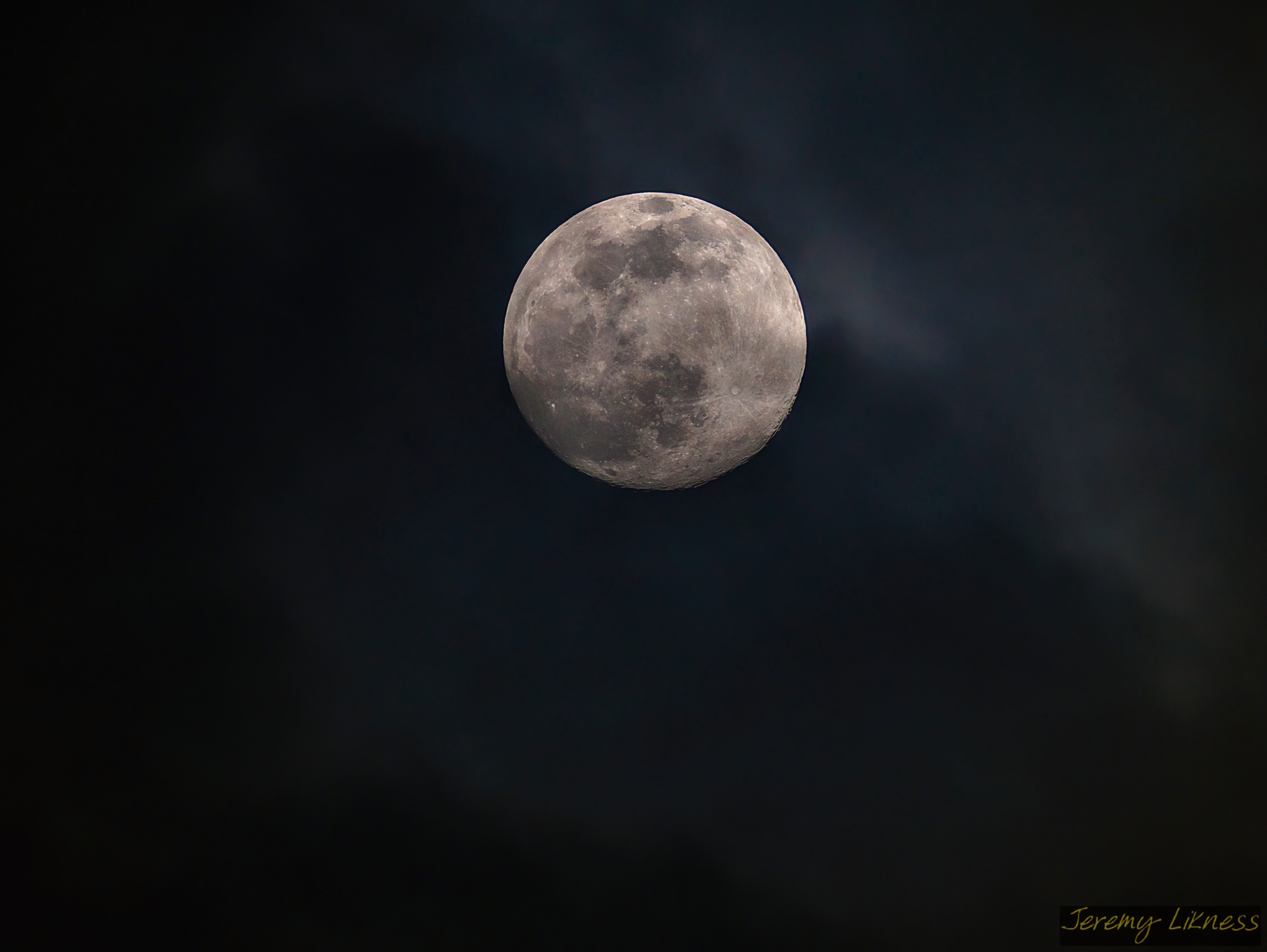 This image of the moon was stacked from multiple images taken while it was behind clouds. The detail of the moon popped out to make it appear to float above the clouds.