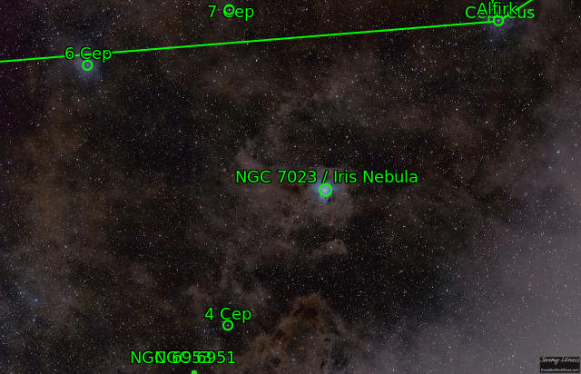 NGC7023 Iris Nebula The star Alfirk (β Cep) 8 Cep The star 4 Cep The star 7 Cep The star 6 Cep
