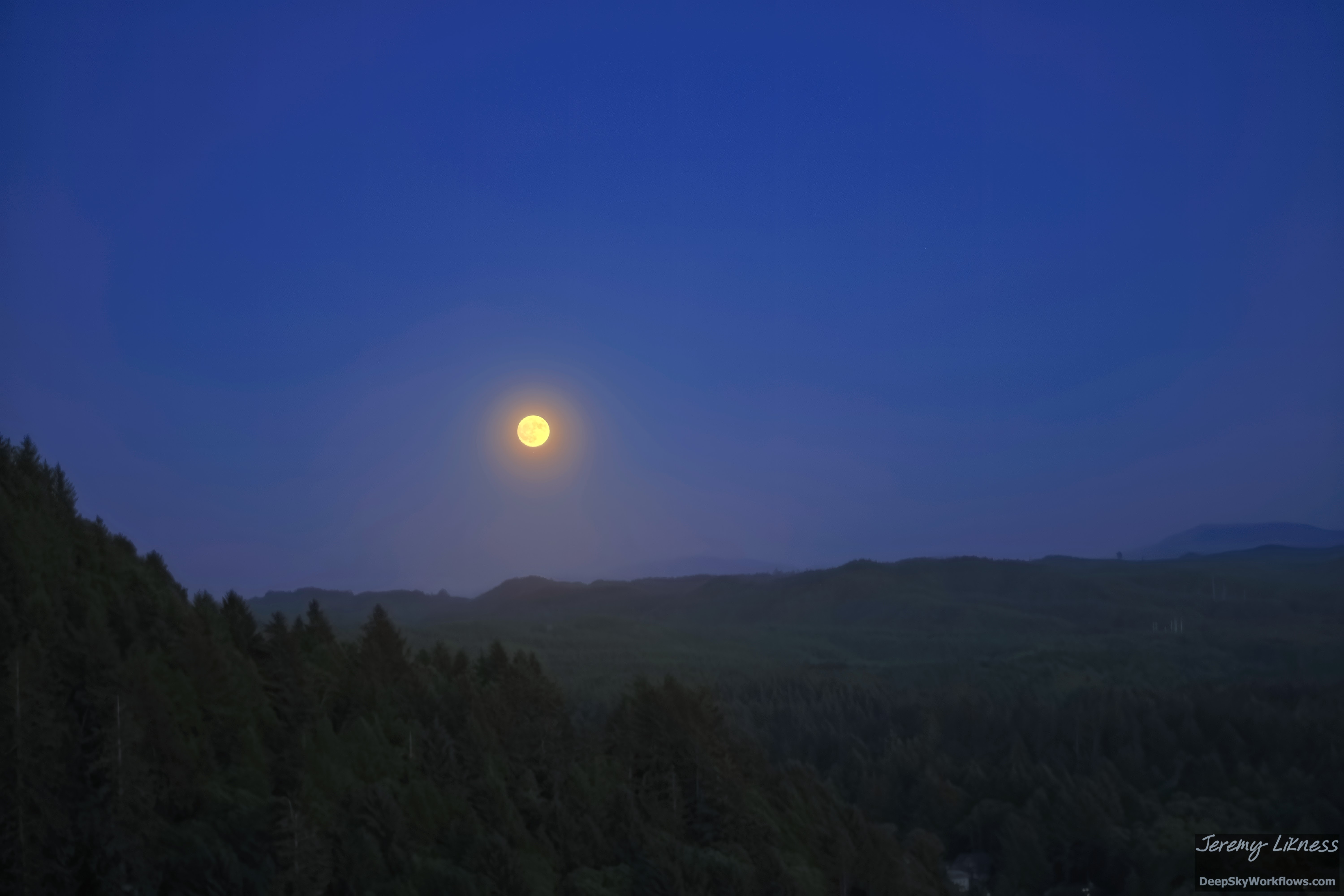 Navigation: Hires Moon Mosaic « Back to Gallery » Full moon over trees on Oregon coast