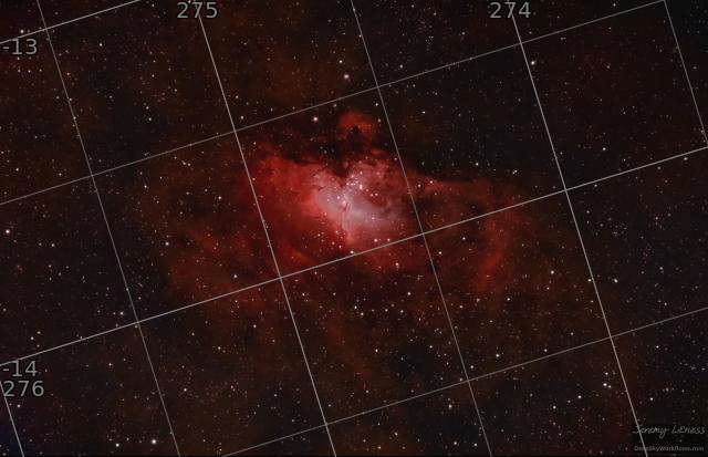 The Eagle a.k.a. the Star Queen nebula, M16, with the Pillars of Creation at its heart. 2.5 hours of 5-minute exposures on an Svbony sv503 70ED with a ZWO ASI294MC Pro camera and the Optolong l-eXtreme filter in Monroe's Bortle 6 skies.