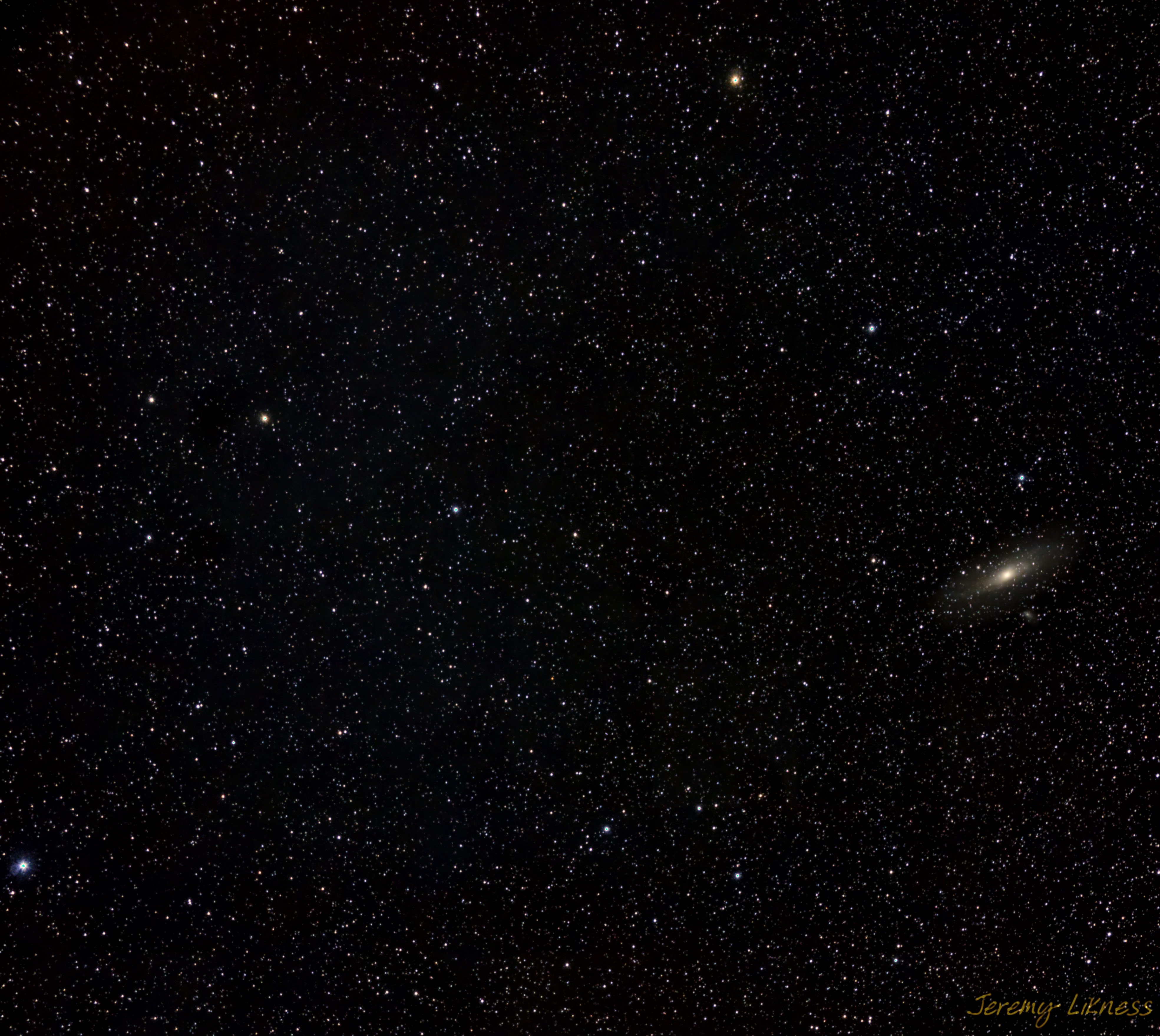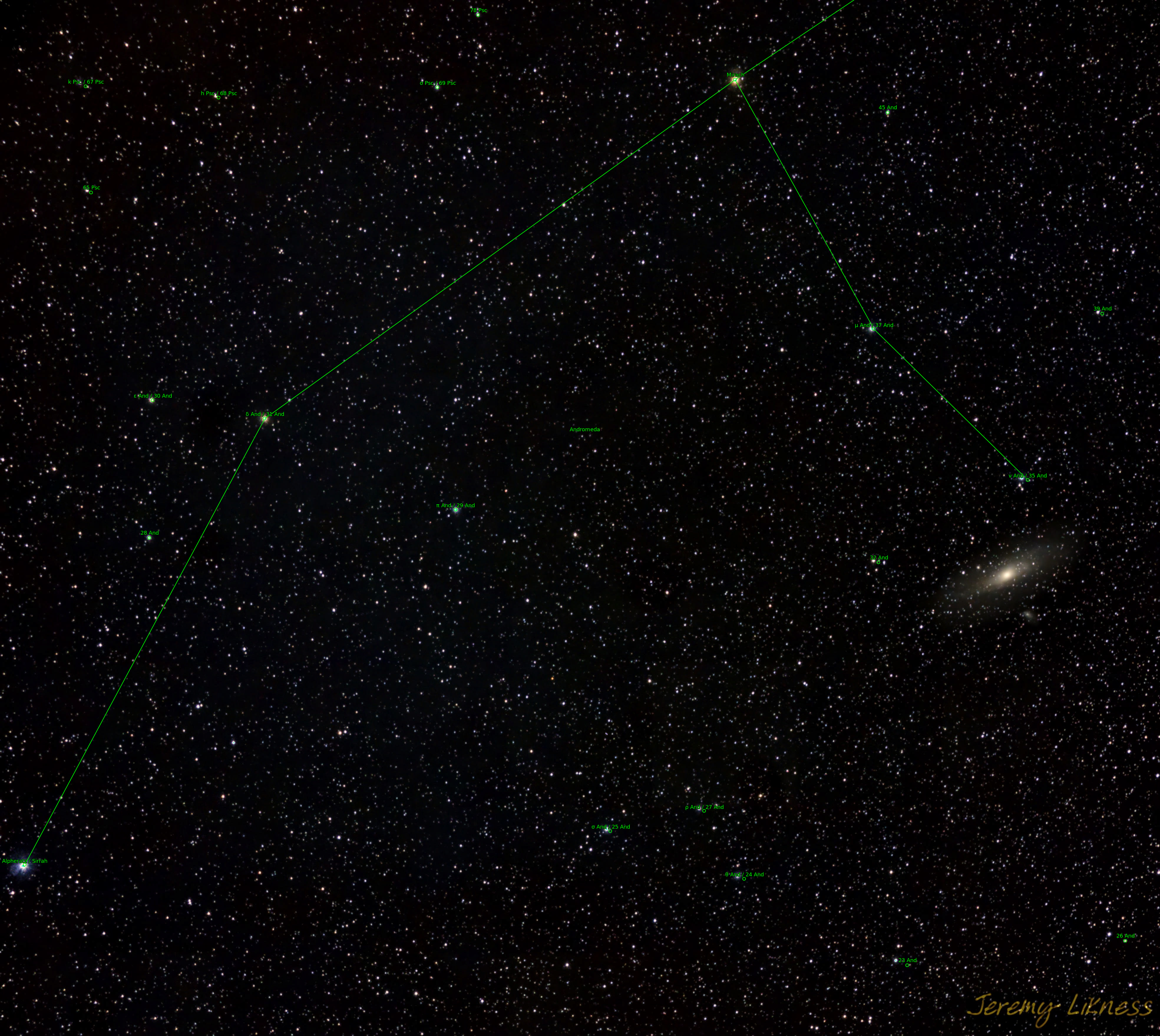Anticipating Andromeda. This is the time of year that M31, the Andromeda Galaxy, begins to appear for longer periods of time. I've done some fun shoots in the past, but this year I feel like it's time to go for a magnum opus photo (for me, personally) and I decided to practice some shots. Those are just practice shots, so I won't be posting them, but I did have my Sony Alpha 6300 ride shotgun on the imaging runs. It snapped this photo of the bright stars that define the Andromeda Constellation chasing the galaxy off the edge of the frame. This is 10 2-minute exposures.