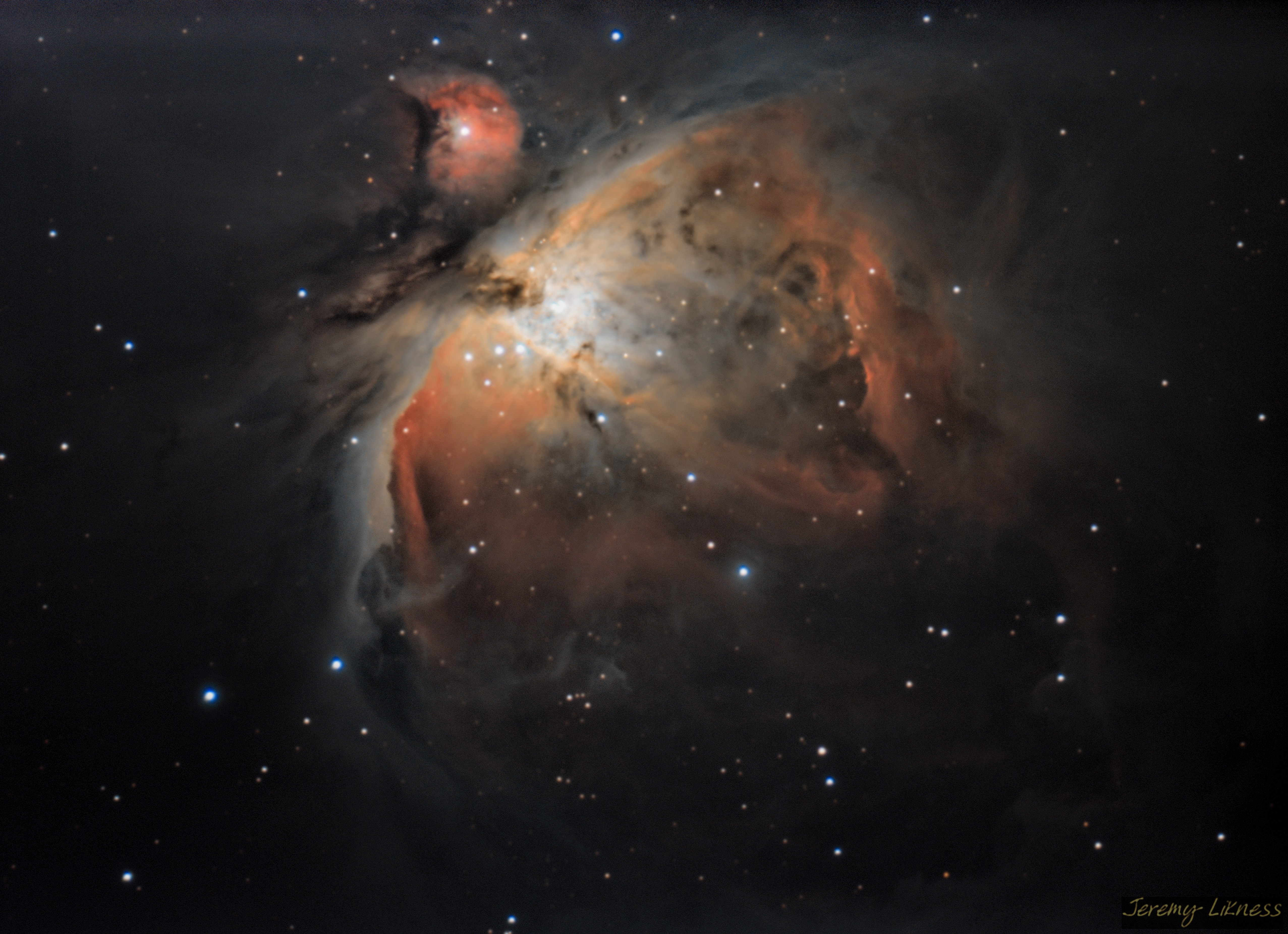 A detailed stack of eight different sessions to produce a detailed portrait of one of the largest, brightest, and most intricately detailed nebulae.