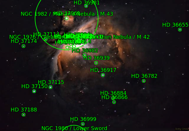 Great Orion Nebula M42 M43 Mairan's Nebula NGC1976 NGC1982 Orion Nebula The star θ1Ori The star θ2Ori