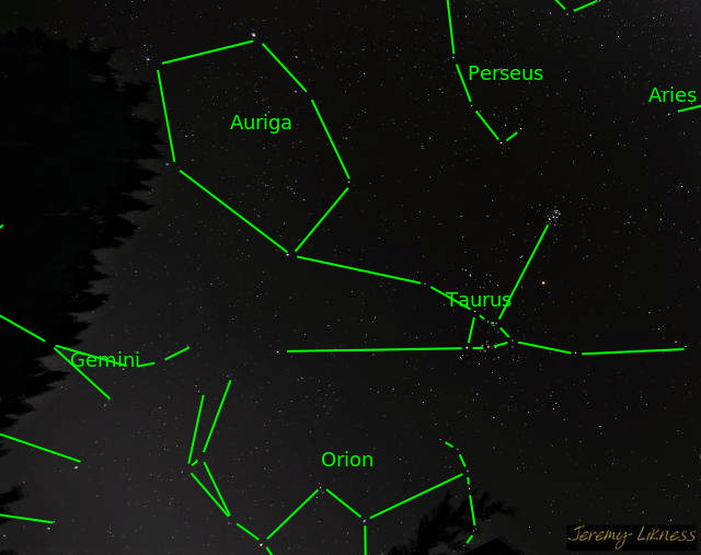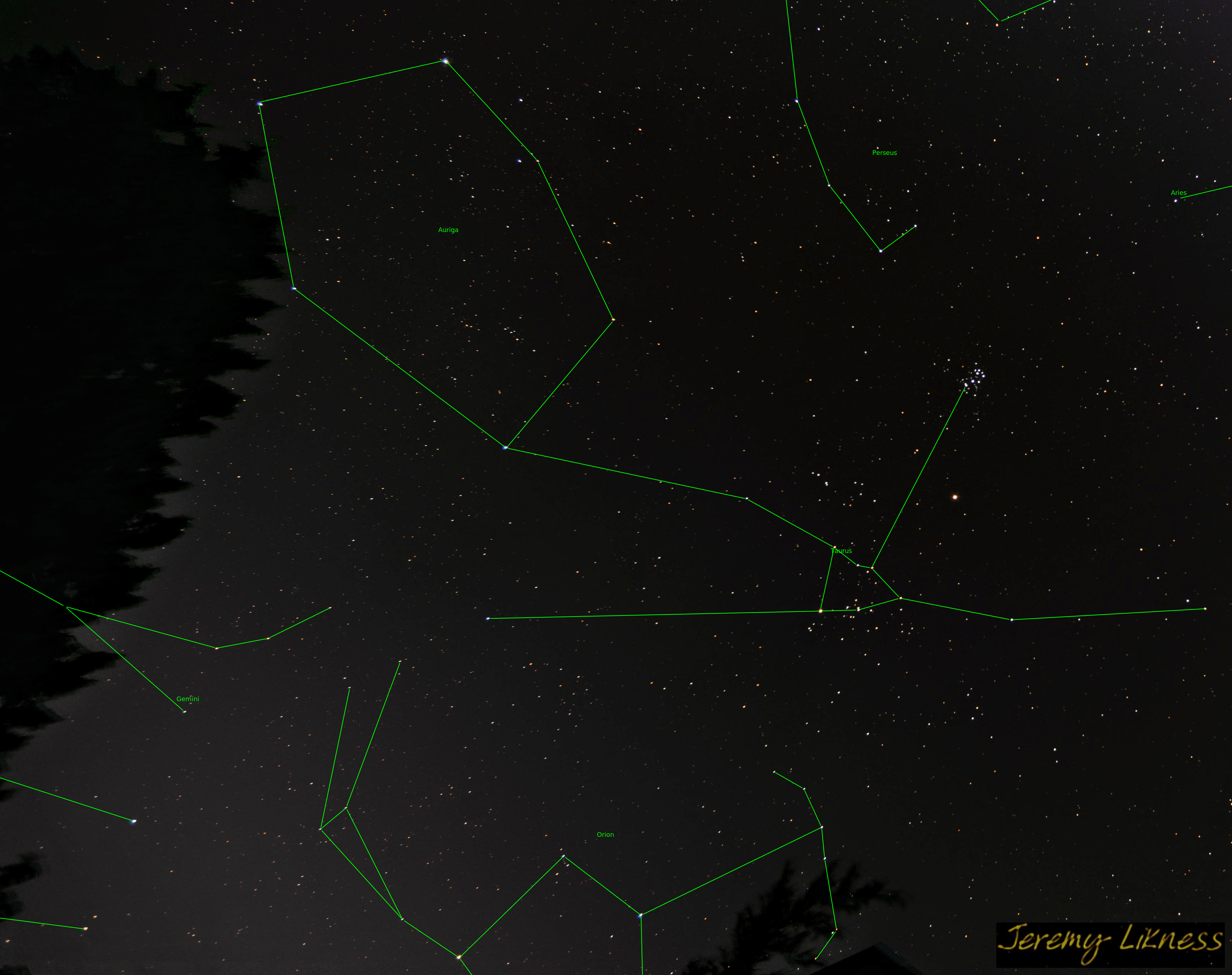 112 Tau 13 Aur 24 Gem 24 Ori 3 Aur 34 Aur M45 Mars 37 Aur 44 Per 58 Ori 87 Tau Al Mankib Alhajoth (α Aur) Almeisan (γ Gem) Betelgeux (α Ori) California Nebula Cor Tauri El Nath (β Tau) IC341 IC353 IC354 IC360 Kabalinan (ι Aur) Maia Nebula NGC1432 NGC1499 Parilicium (α Tau) Part of the constellation Gemini (Gem) Part of the constellation Orion (Ori) Part of the constellation Perseus (Per) The constellation Auriga (Aur) The constellation Taurus (Tau) The star Aldebaran The star Alhena The star Atik (ζ Per) The star Bellatrix (γ Ori) The star Betelgeuse The star Capella The star Elnath The star Hassaleh The star Mahasim (θ Aur) The star Menkalinan (β Aur)