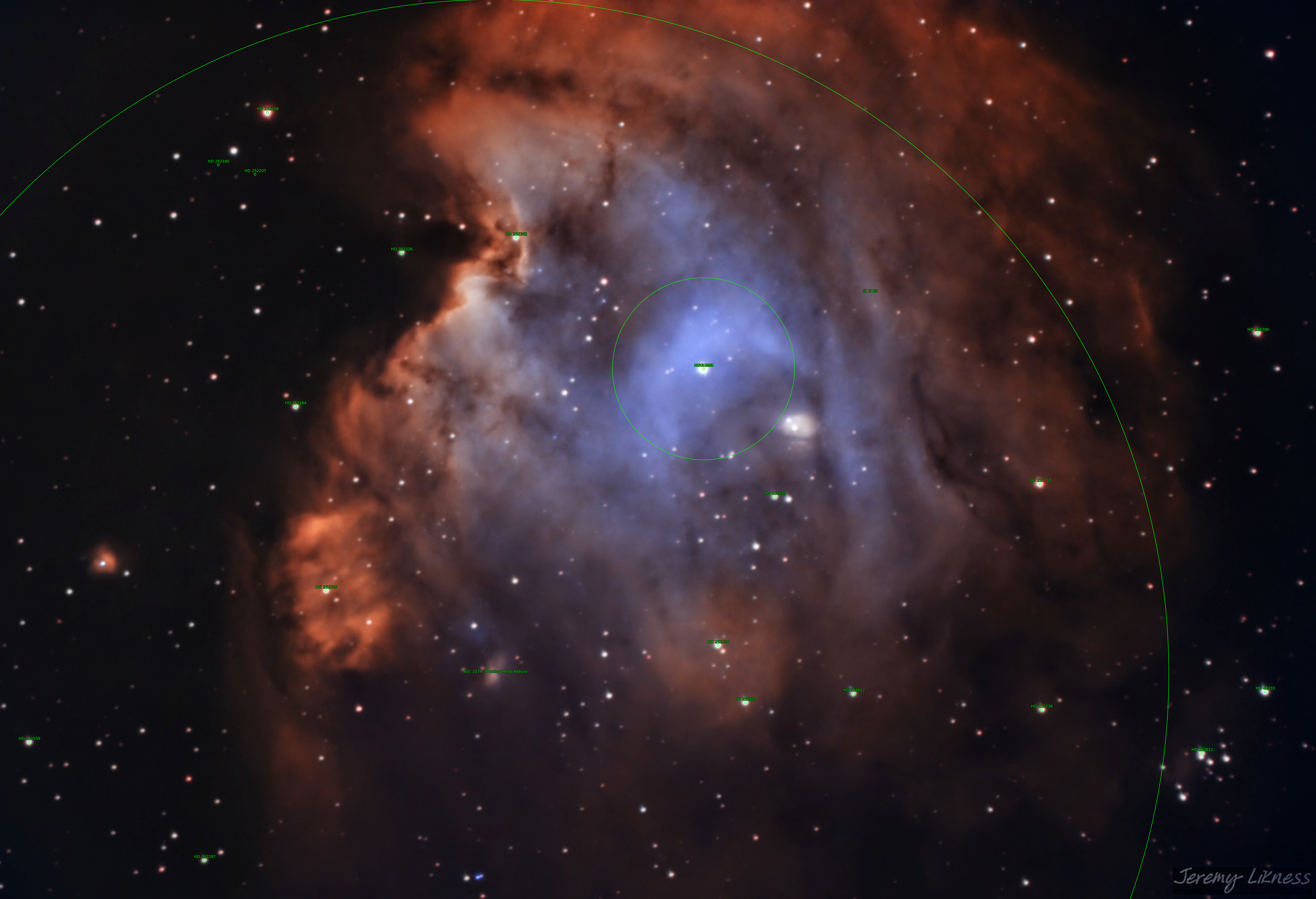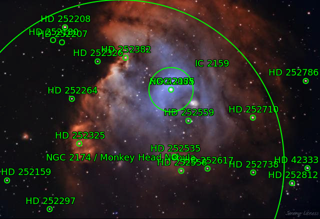 The Monkeyhead Nebula lies in the nebula-dense constellation of Orion. It is believed to be formed of dust, wind, and radiation caused by newborn stars.