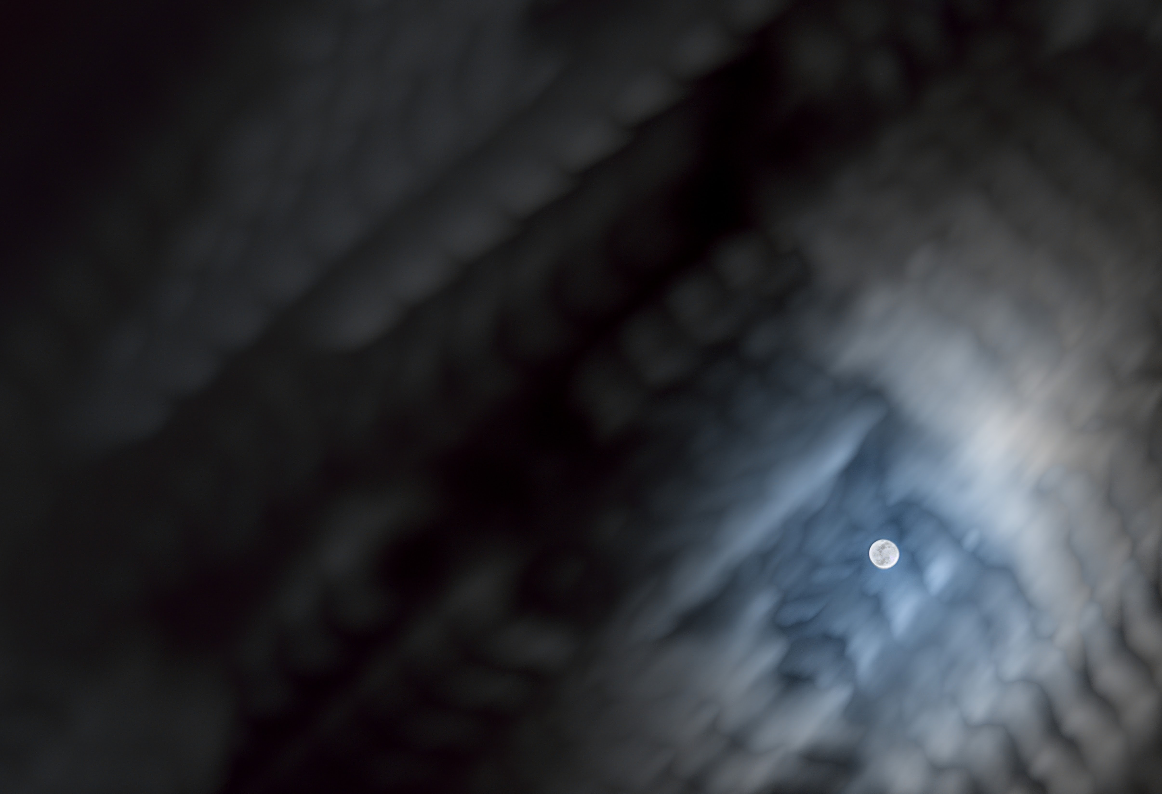 Like tire treads pressed in mud, the clouds ripple across a stubborn moon that refuses to hide. It's rather full of itself.