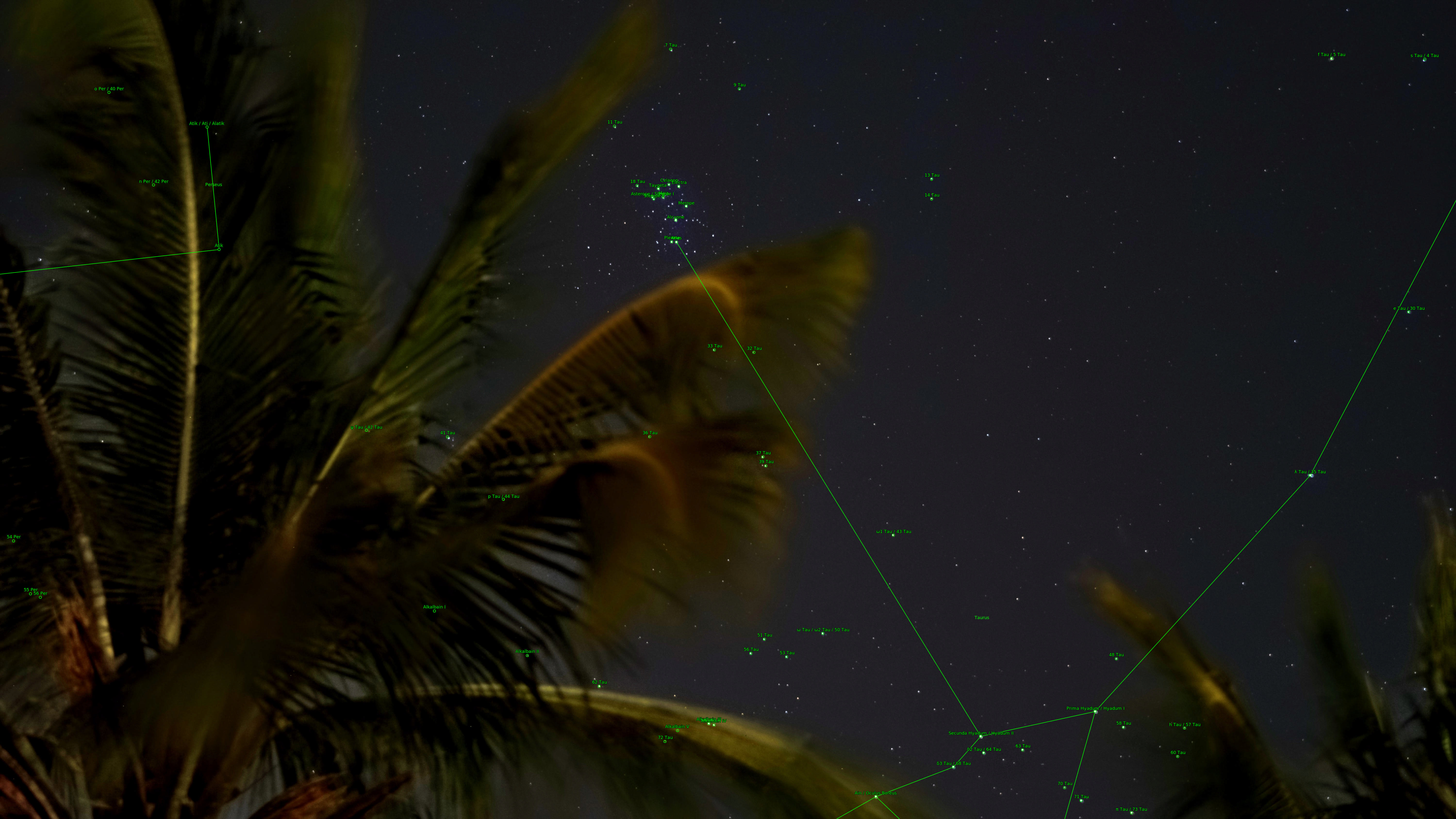 The palm trees did a great job of framing the Seven Sisters from Grand Cayman.