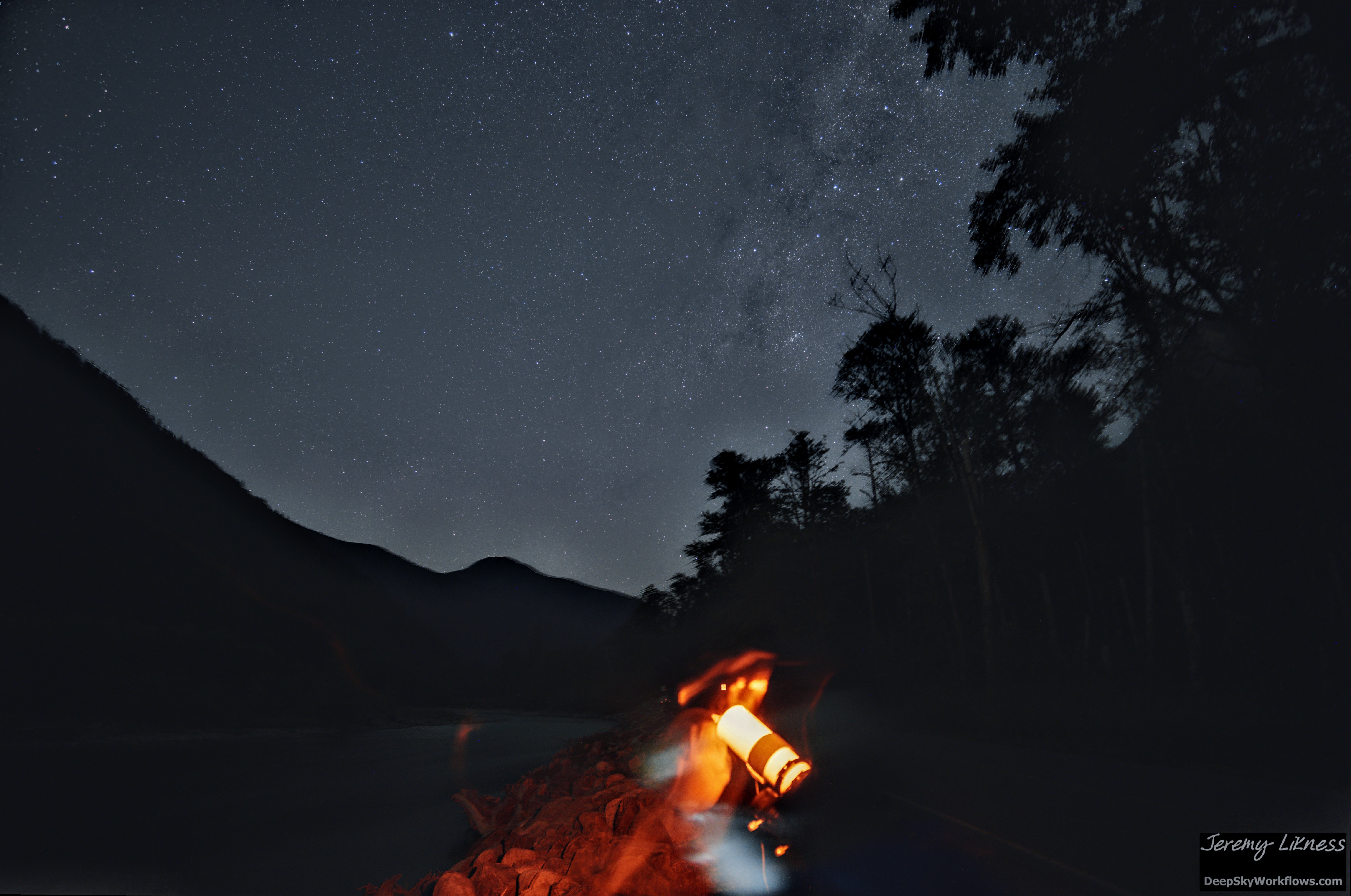 I set up a time lapse while my telescope was pointed at deep sky targets. A few times I walked over to check the camera. The long exposures captured my headlamp and my face as an ephemeral ghost.