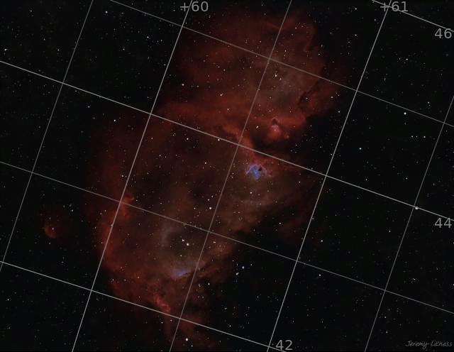 Stack four full moons next to each other and you'll have the size of this massive nebula that is a close neighbor of the Heart Nebula. What goes with heart? Soul, of course! What is the shape of the soul? Westerhout 5, the Soul Nebula.