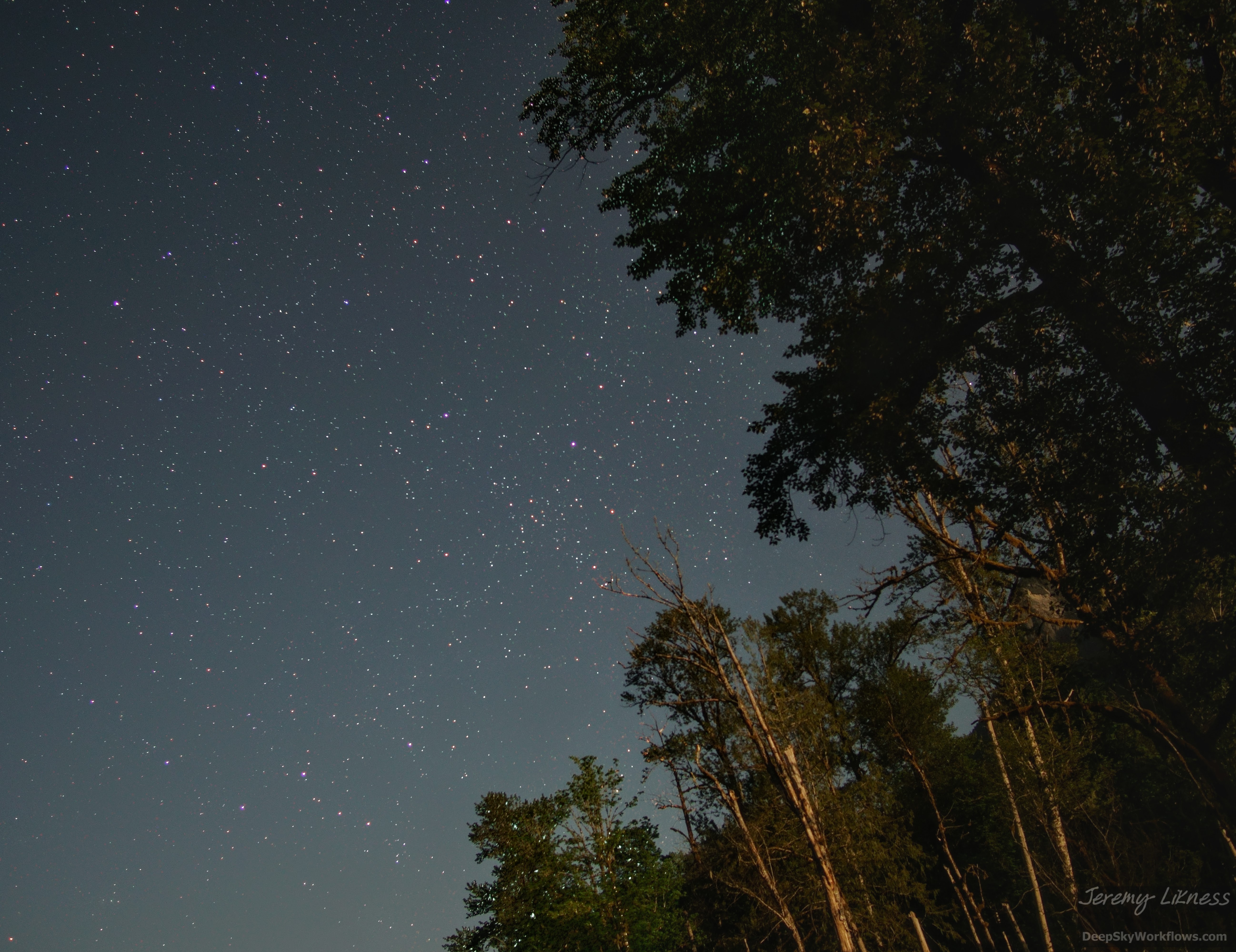 The stars over moonlit trees next to the North Fork of the Skykomish River in Index, WA.