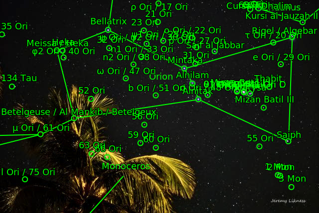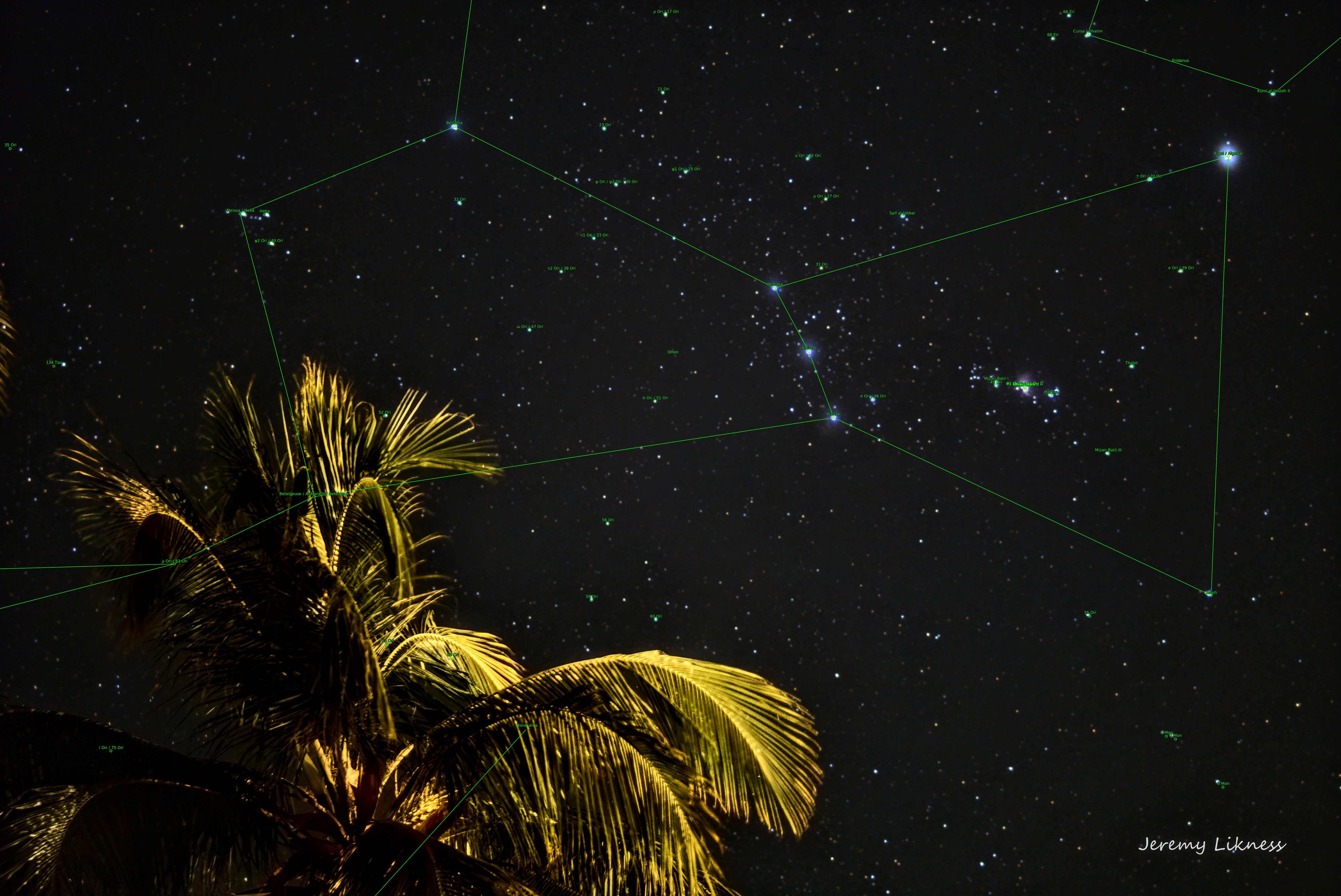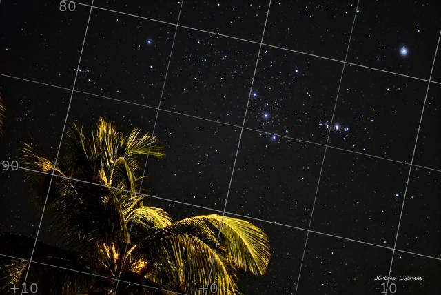 A very tropical Orion rises above the palm trees on Grand Cayman.