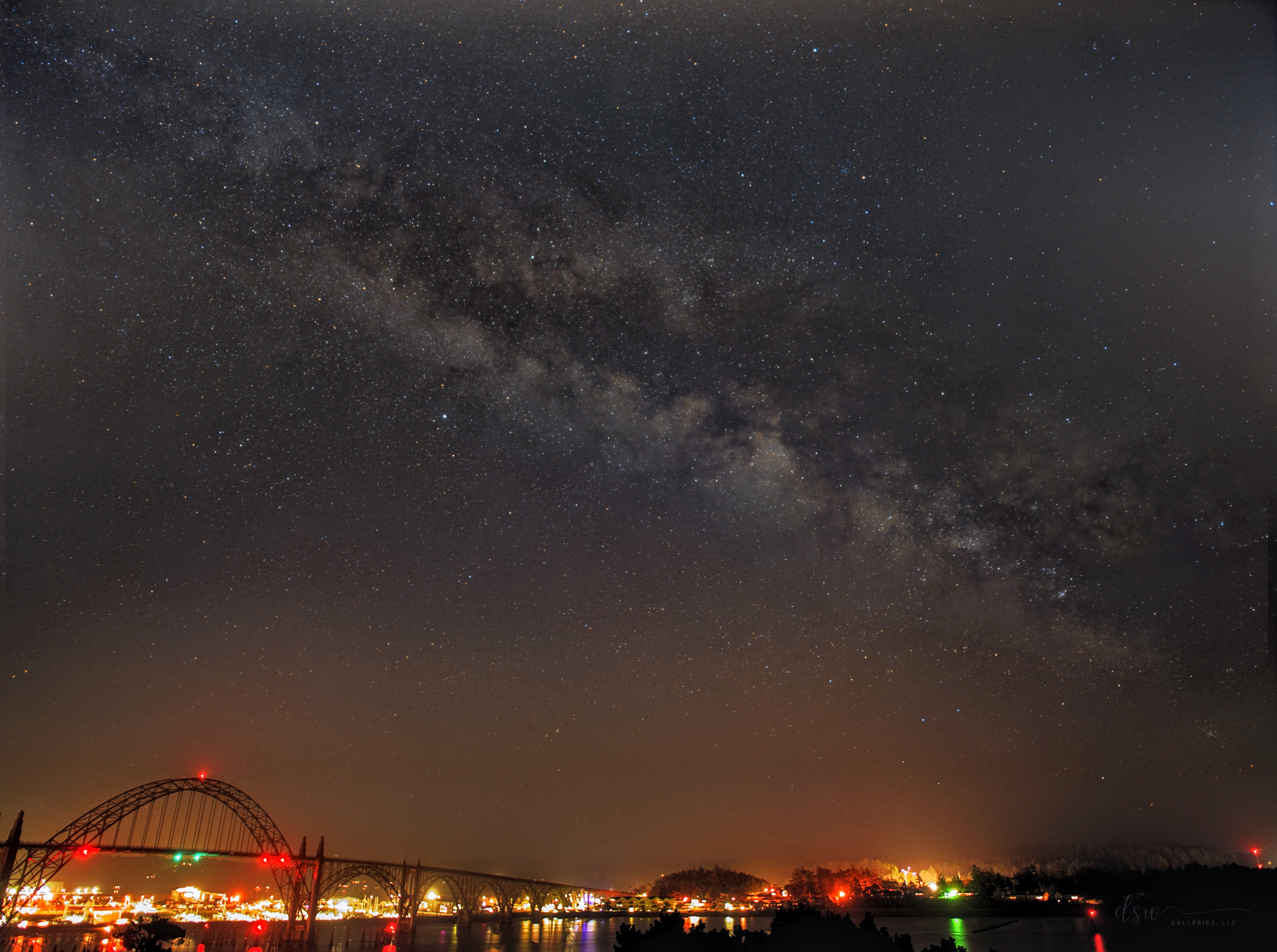 A capture of the edge of our galaxy presenting a bridge to the stars over our local Yaquina Bay Bridge.
