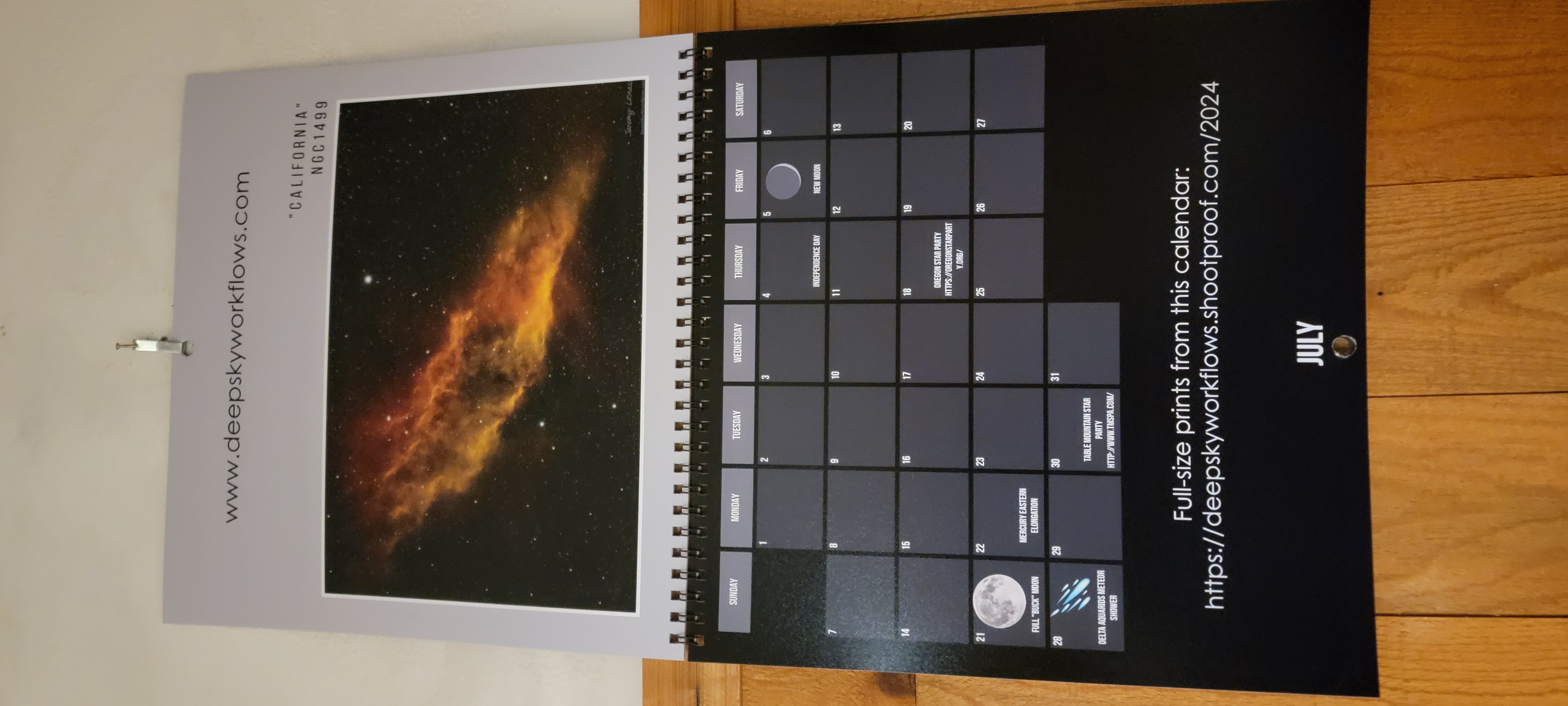 I’m writing to share that the Oregon Coast 2024 Calendar is ready. I am very late in bringing this to you and will miss the holidays, but I’m way ahead of last year when the calendar just wasn’t turning out. This year I not only found a design that I loved and could customize to add astronomy-related events, but also the print quality is amazing.